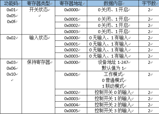 默认为正常工作模,用户通过指令控制继电器开关切换与读取输入状态。